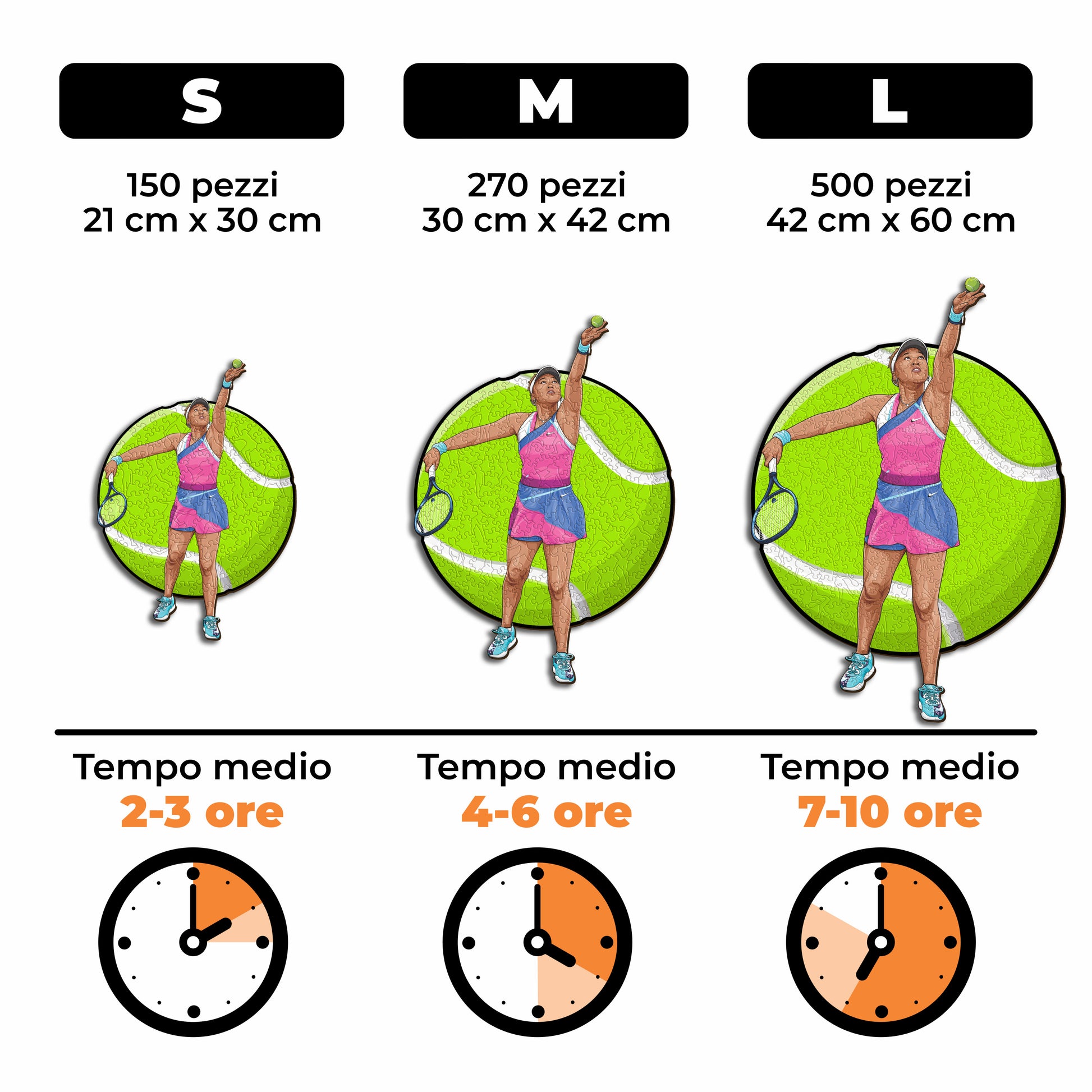 ✓ Ogni pezzo del puzzle ha una forma unica che rappresenta elementi legati al tennis e le azioni emblematiche dei giocatori.