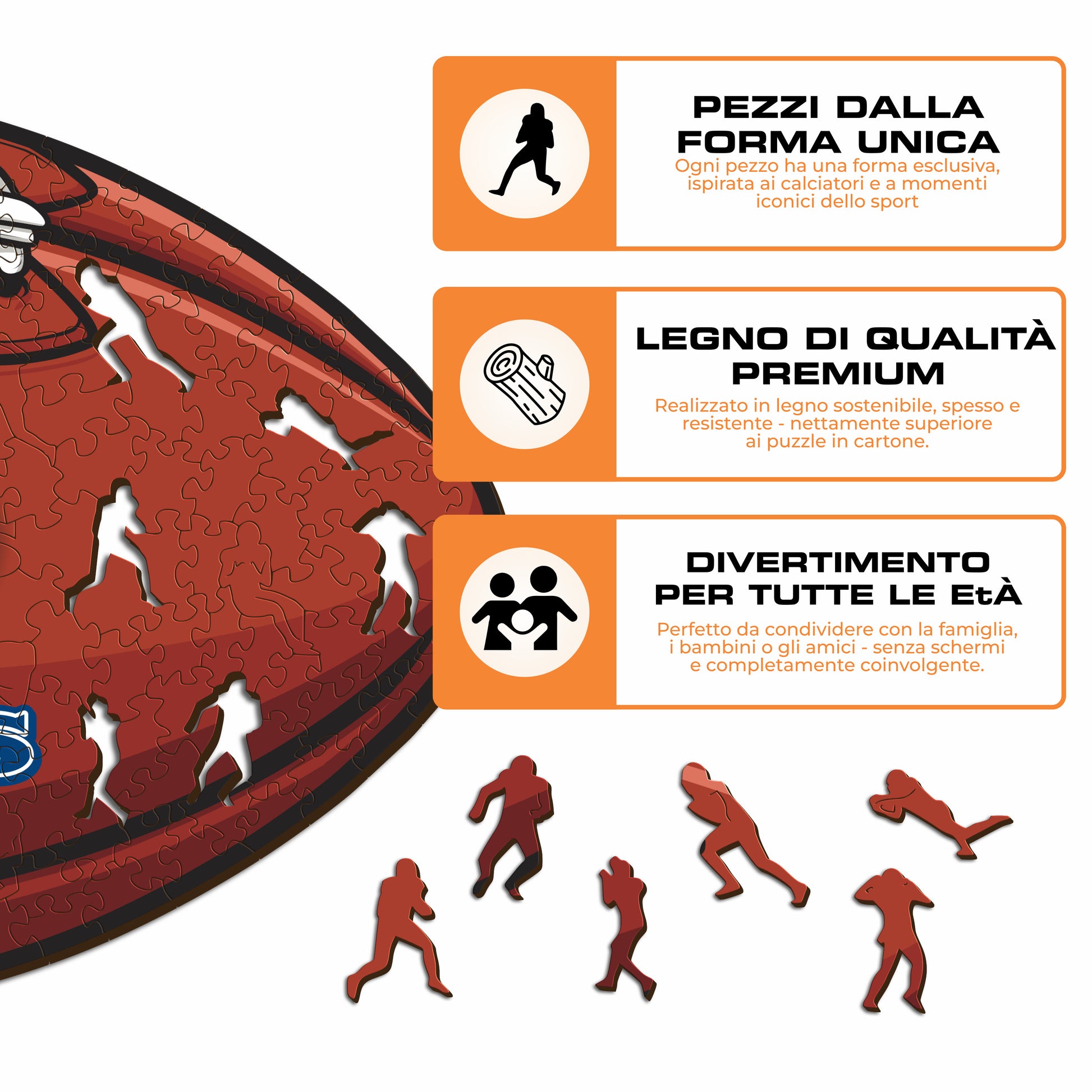 ✓ Ogni pezzo del puzzle ha una forma unica che rappresenta elementi legati al football e pose iconiche dei giocatori.
